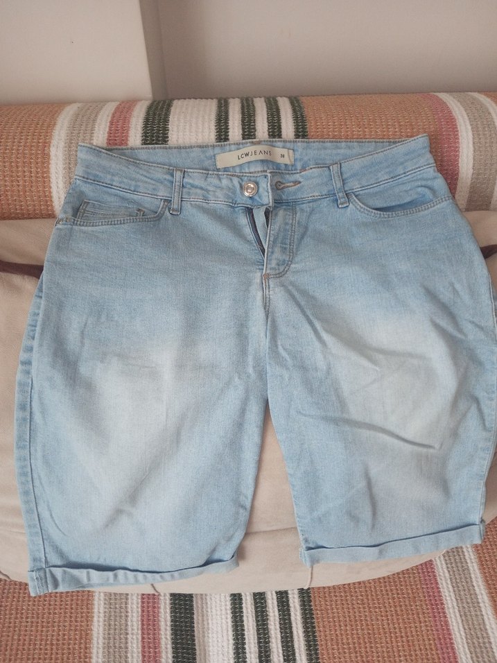 Mavi pastel renkte, bol kesim kadın denim mini şort, sokak modasına uygun, rahat ve şık bir görünüme sahiptir.