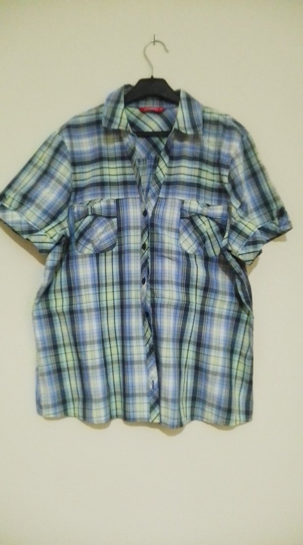 Mavi Pastel Renkli Kısa Kollu Kadın Gömlek