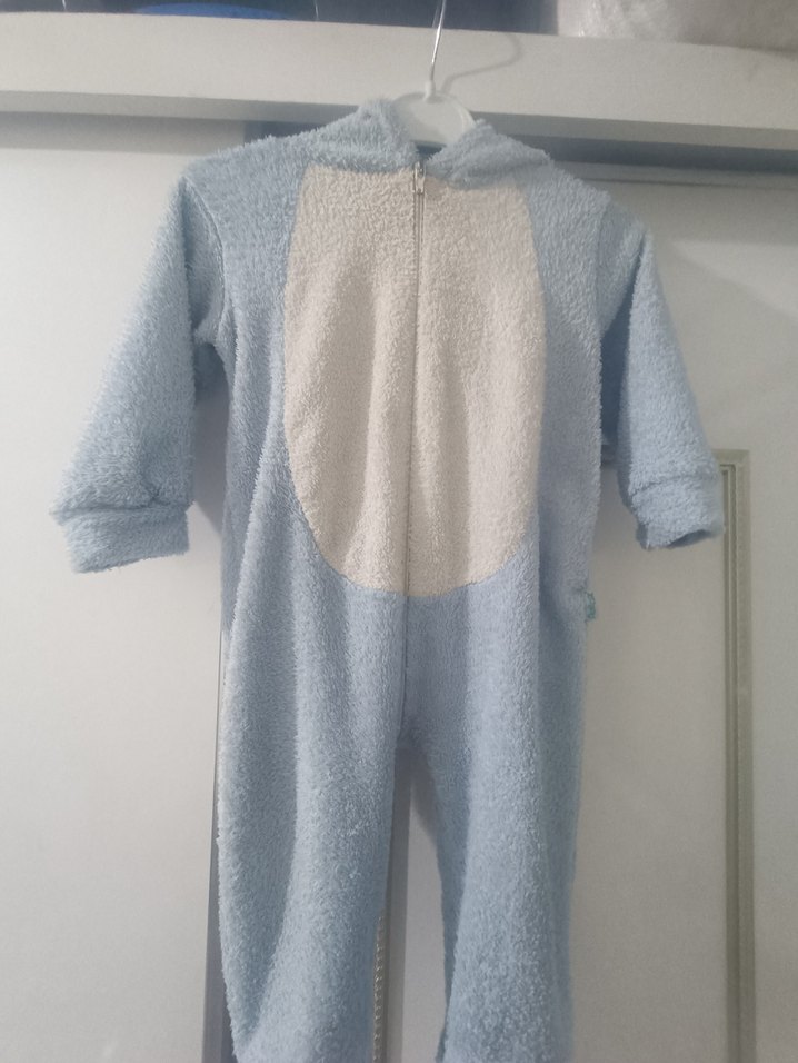 Mavi Peluş Bebek Tulumu Kapüşonlu