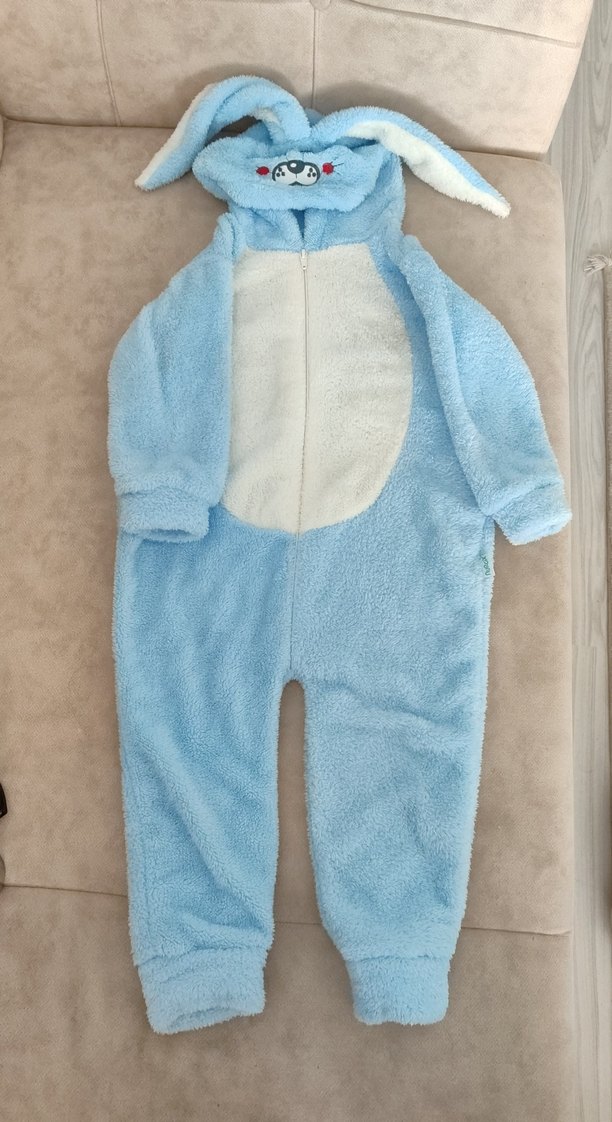 Pastel mavi renkte, yumuşak ve sıcak kumaştan yapılmış, kapüşonlu ve kürk detaylı bebek tulumu. Düz ve önden fermuarlıdır. 1 kere giydi beklediği için resimde görüldüğü üzere hafif renk değişmesi mevcut ne lekesi oldu bilmiyorum.