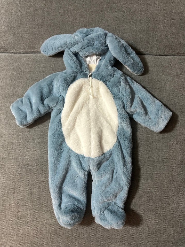 Pastel mavi renkte, kulak detaylı kapüşonlu, yumuşak ve sıcak peluş bebek tulumu. Desensiz ve soğuk havalar için uygun.