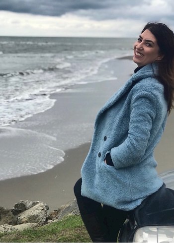 Mavi renk, uzun kollu, normal kesim yumuşak ve sıcak dokusuyla günlük kullanıma uygun peluş kaban