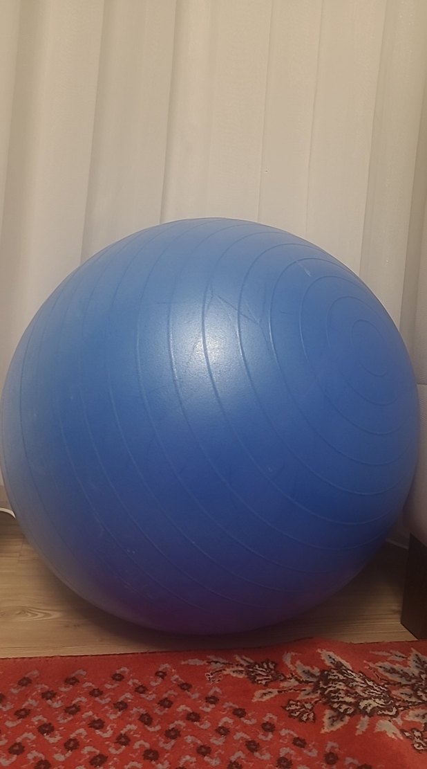Denge ve karın egzersizleri için tasarlanmış, düz yüzeyli mavi pilates topu. Canlı rengi egzersizlere enerji katıyor. ♂️179 cm