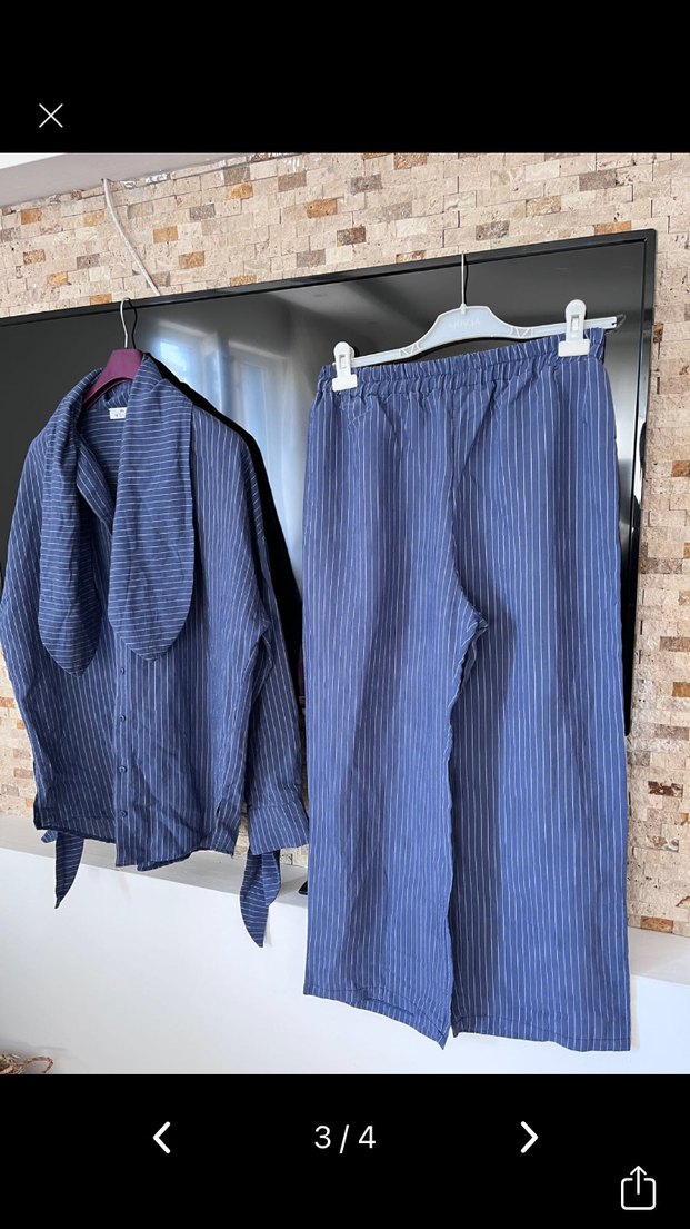 Mavi renkli, pilili ve uzun kollu erkek pijama takımı, normal kesim ve yakası kesimli. Rahat ve şık günlük kullanım için uygundur.