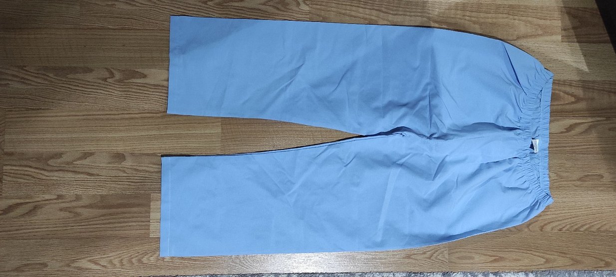 Mavi, pilili ve parlak görünümlü, normal kesim midi uzunluğunda kadın kumaş pantolon.
