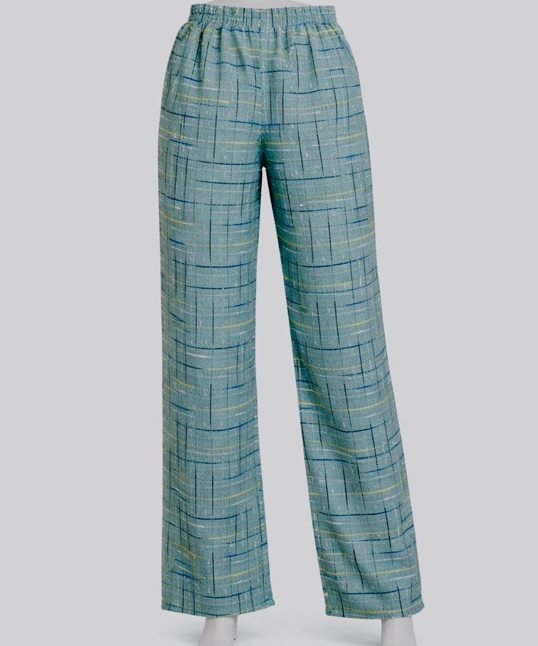 Kadın kumaş pantolon, bol kesim kesim ve pilili detaylara sahiptir. Şanel pamuklu kumaştır