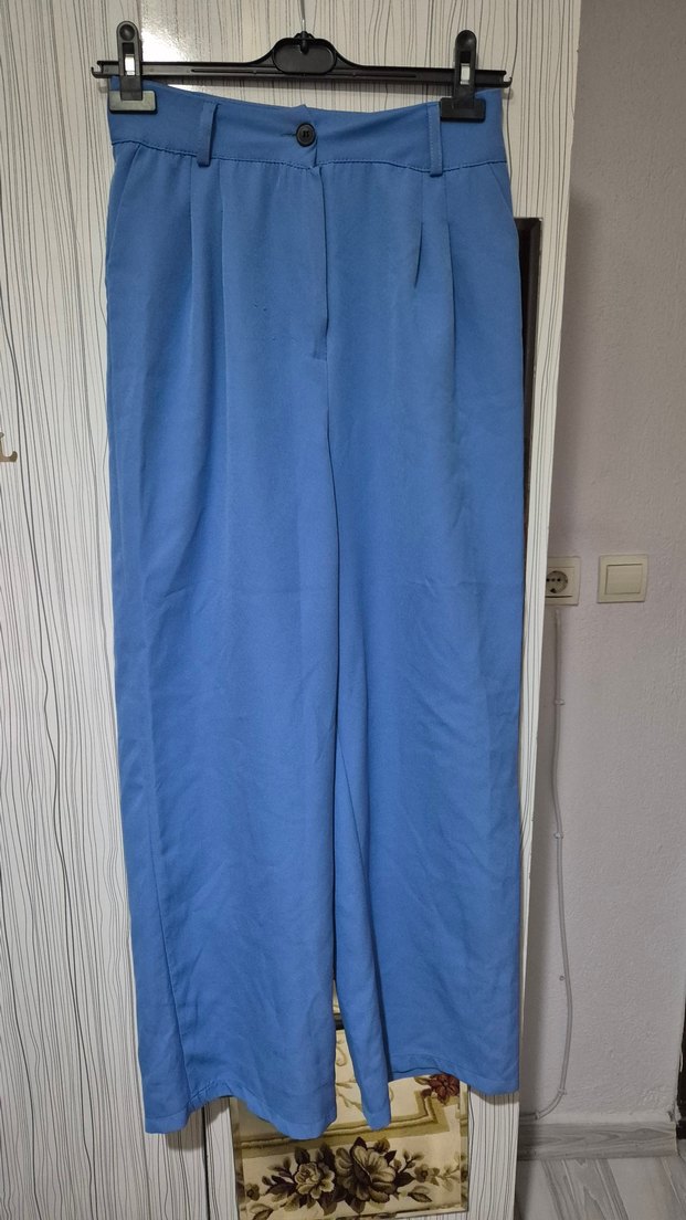 Uzun, pastel mavi renkli, pilili ve regular fit kesime sahip minimalist ofis stili için uygundur. Deformesi yok ihtiyaç fazlası olduğu için satıyorum