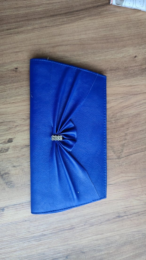 Mavi renkli, pilili ve parlak yüzeye sahip kadın portföy çanta, minimalist ve çağdaş tasarıma sahiptir, düğün için uygundur. içinde zinciri de mevcuttur