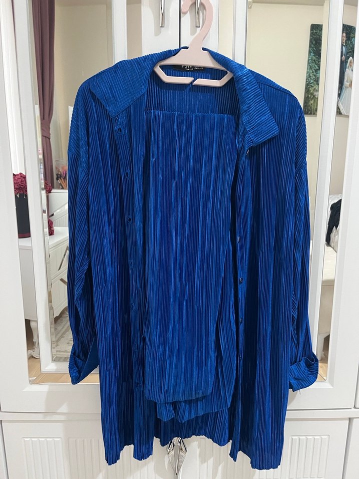 Mavi Pilili Kadın Uzun Kollu Takım Elbise