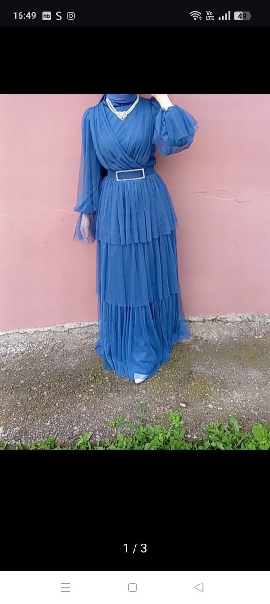 Mavi renk, pilili katmanlara sahip uzun elbise. 2-3 kez giydim şalıda var almak isteyene yardımcı olurum