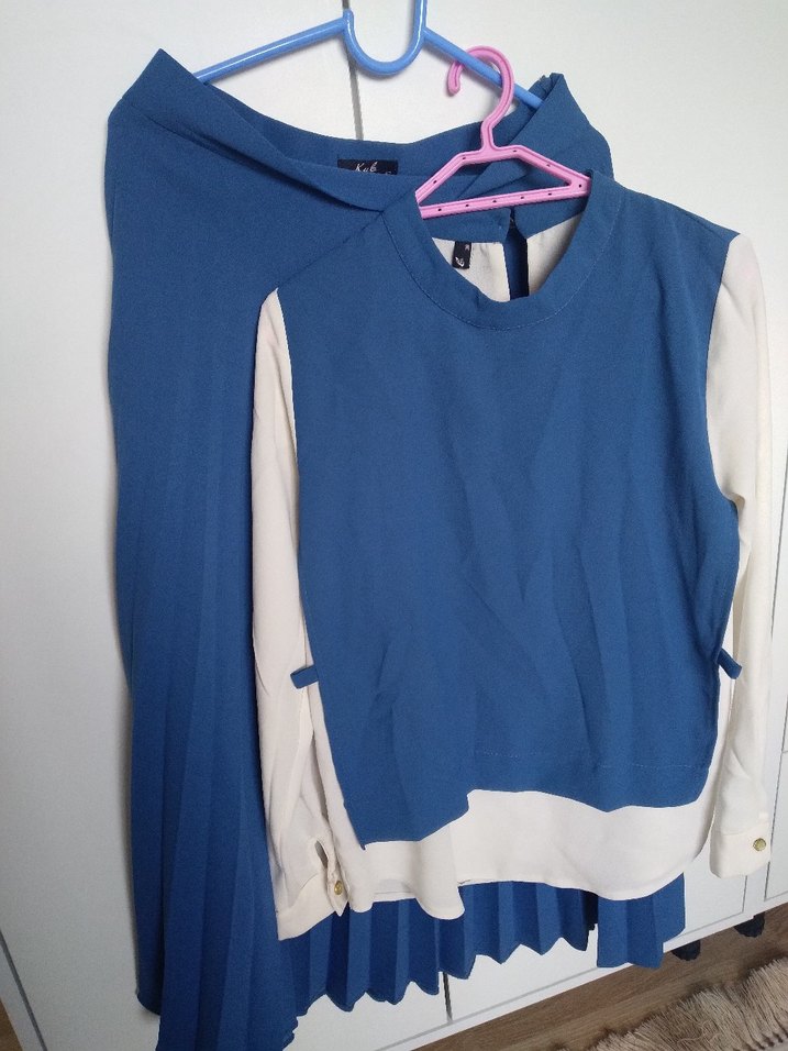 Mavi renkte, sentetik kumaştan, piliseli ve uzun kollu, normal boyda, bol kesim Günlük kullanıma uygundur.
