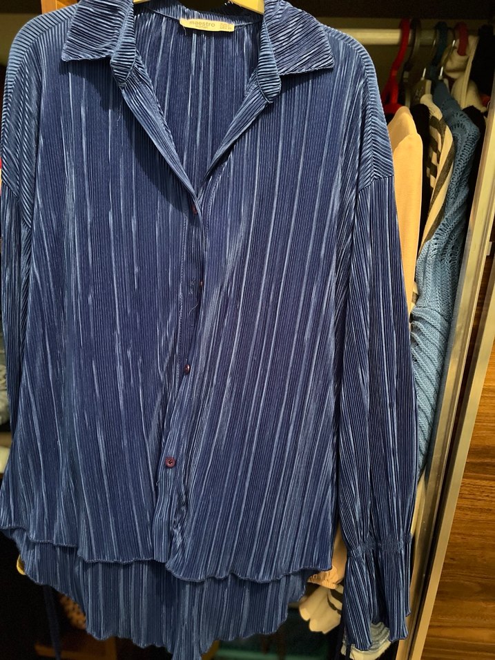 Mavi Piliseli Kadın Gömlek