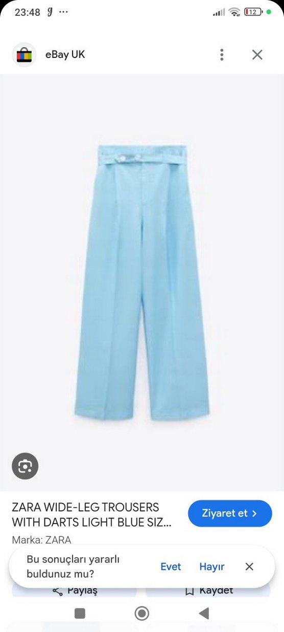Mavi keten kumaştan, piliseli, midi boy, normal kesim pantolon. Minimalist ve normcore tarzda, günlük kullanım için uygundur.