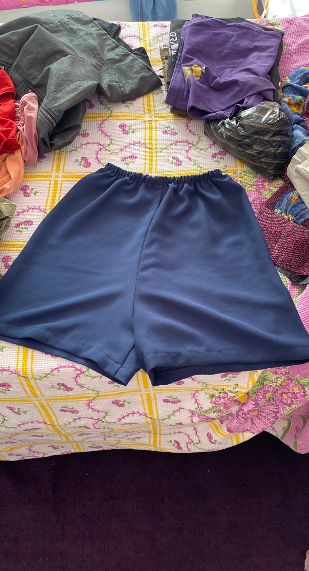 Mavi renkli, bol kesim ve piliseli detaylara sahip mini şort . Yumuşak sentetik kumaştan üretilmiştir. Rahat ve sade bir tasarım. El dikimi