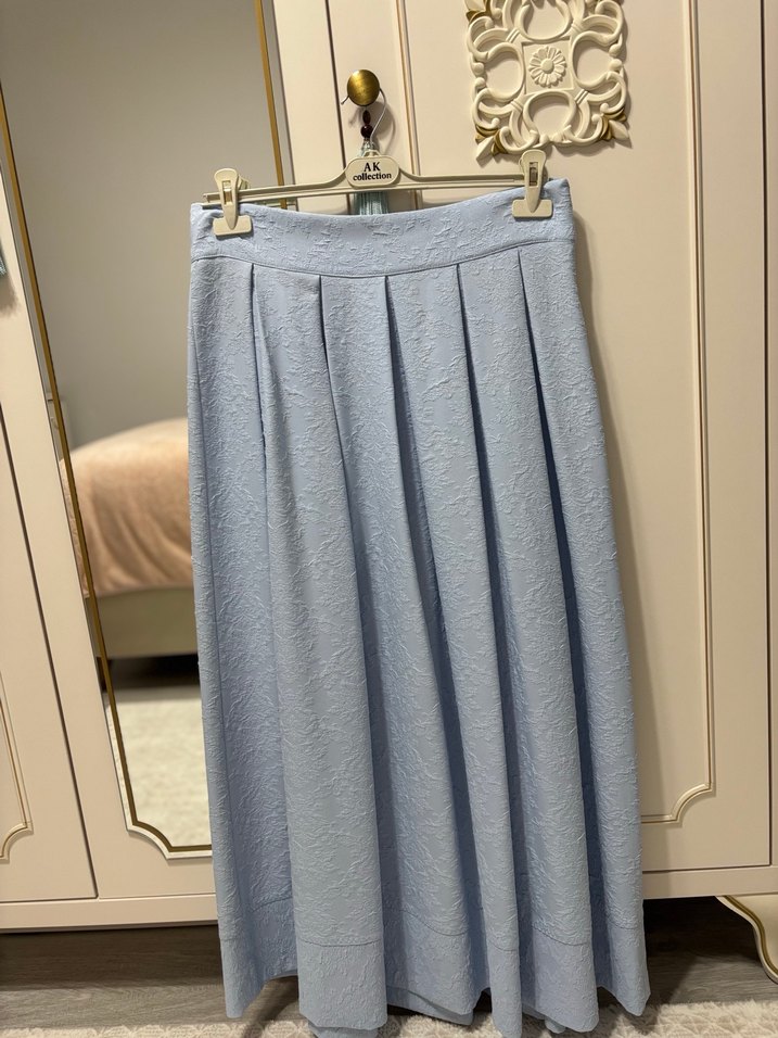 Mavi Piliseli Uzun Keten Etek