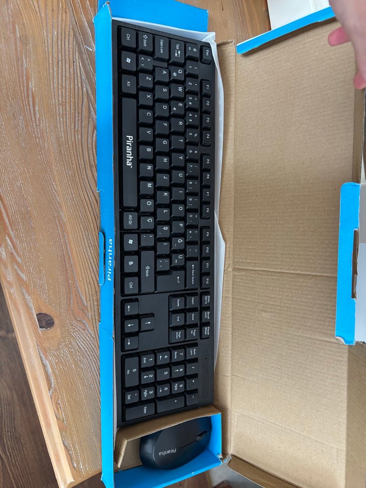 Pirinha marka tam düzenli, sayısal tuş takımlı mavi kablolu klavye ve mouse seti, günlük bilgisayar kullanımı için uygundur. Çalışıyor kusursuz kablosuz USB soketi ile kullanılıyor type C değil
