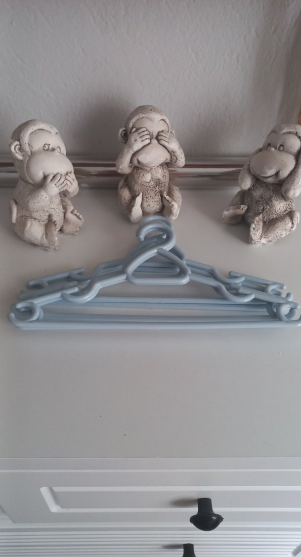 mavi renkte, kıyafet asmak için plastikten yapılmış askı seti, kolay kullanım için kancalı.