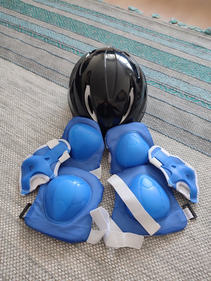 Koyu mavi renkli, plastik bisiklet diz koruyucuları, güvenli tutuş için Velcro bantlı, avangart biker tarzında.Hic kullanılmamış.