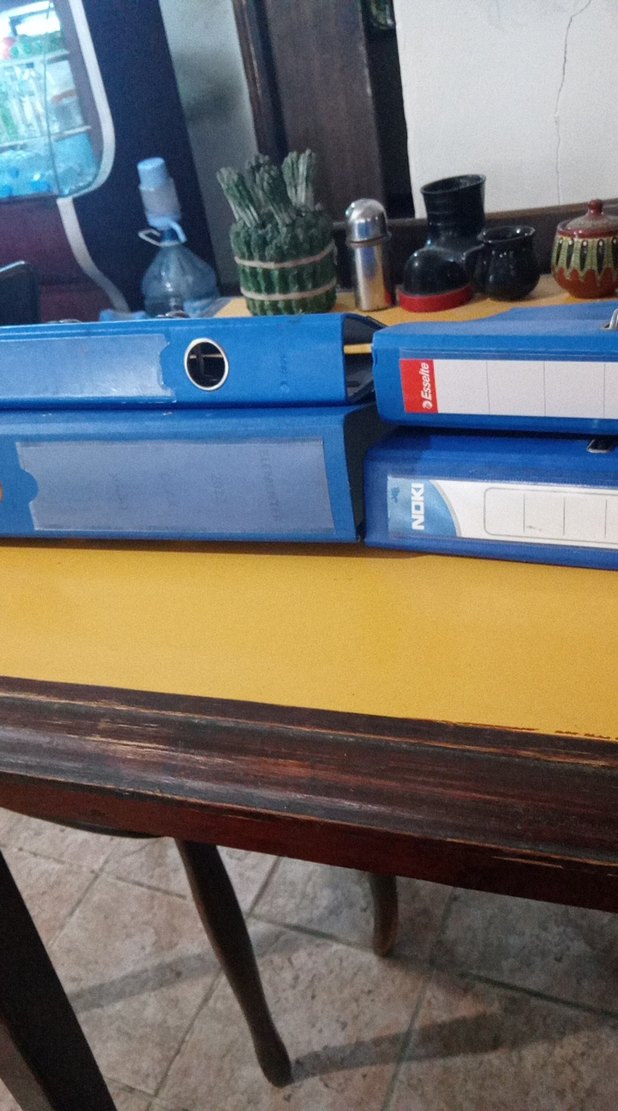 Belgeleri düzenlemek için etiketli ve dayanıklı yapıda mavi plastik dosya klasörleri.