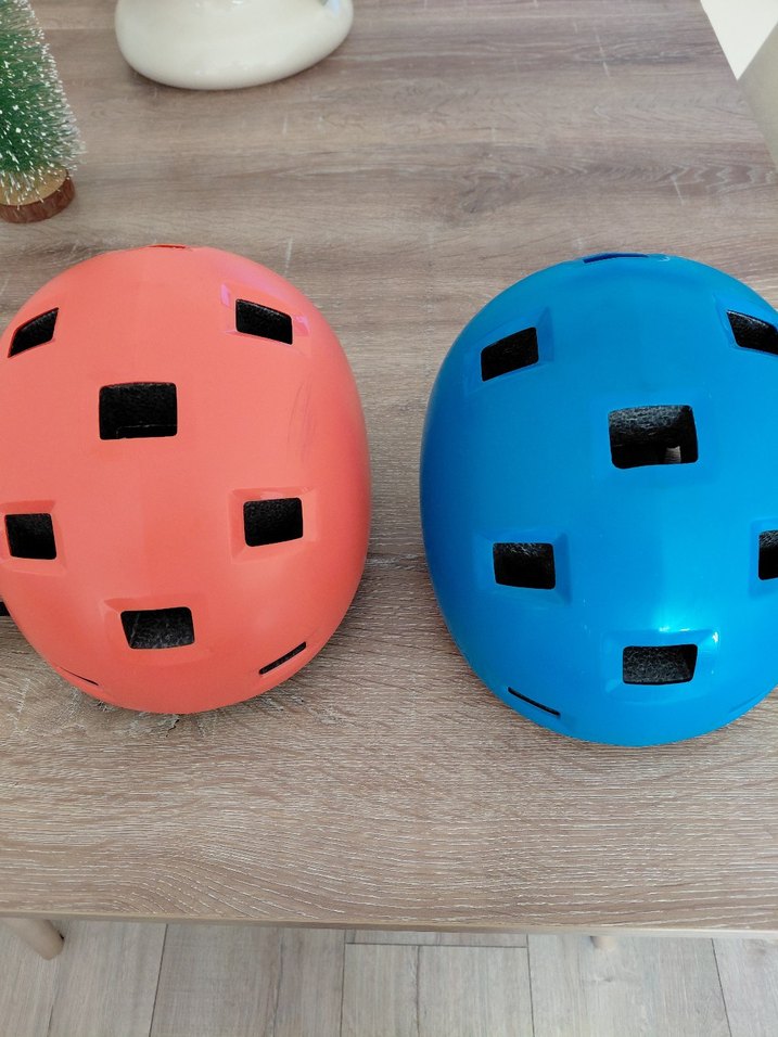 Mavi renkli motosiklet kaskı, plastikten yapılmış ve çoklu havalandırma deliklerine sahip. Sade tasarımıyla zahmetsiz şıklık sunar.