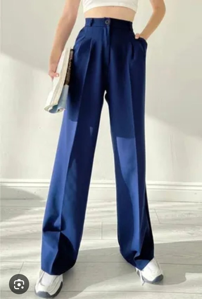 Mavi Pliseli Kadın Kumaş Pantolon
