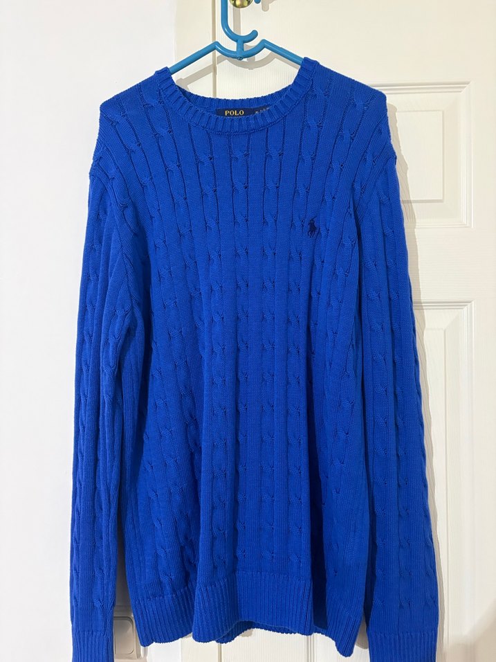 Mavi Polo triko kazak, bisiklet yaka ve uzun kolludur. Rahat kesimi ve örgü dokusuyla günlük rahat stil için uygundur.