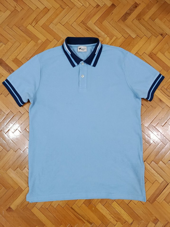 Açık mavi renkte, kısa kollu, düğmeli yakaya sahip erkek polo tişört. Yaka ve kol uçlarında koyu mavi detay bulunur.sadece bir gün girilmiştir ölçüleri resimlerde mevcuttur