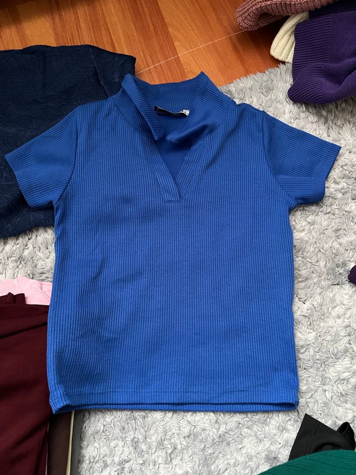 Mavi Polo Yaka Kısa Kollu Tişört
