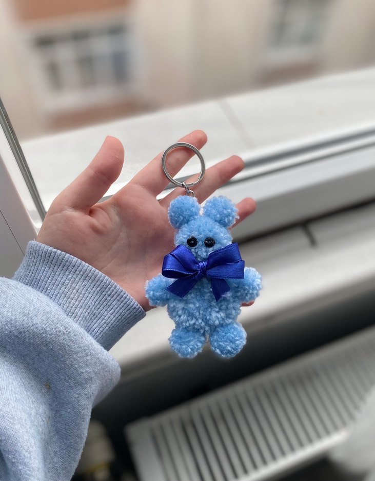 Mavi Ponpon Ayıcık Anahtarlık Charm