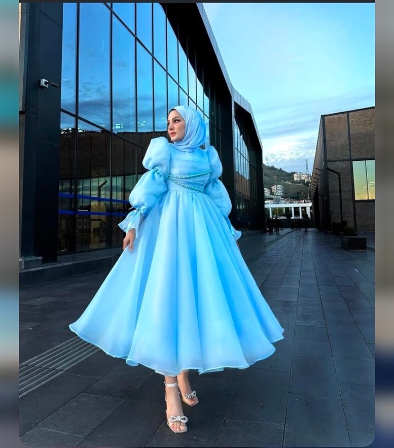 Mavi prenses model tesettür kiralık elbise