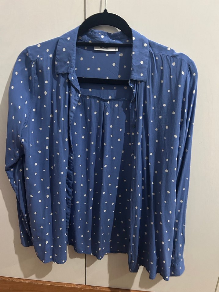 Mavi Puantiyeli Uzun Kollu Kadın Gömlek