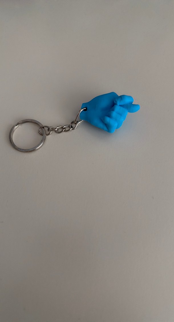 Mavi renkli, püsküllü ve minimalist tasarıma sahip anahtarlık, sade ve karşı kültür tarzını sevenler için uygun.