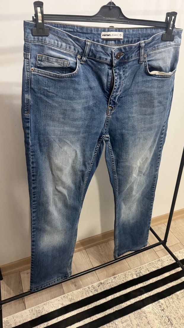 Mavi denim kumaştan, rahat kesim ve normal boy uzunluğunda, günlük kullanım için uygun, ve desen içermeyen erkek jean pantolon.