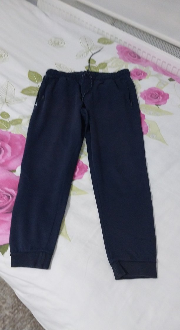 Yumuşak ve sıcak kumaştan, elastik bel ve bilek detaylı mavi rahat kesim erkek eşofman altı. Günlük kullanım için uygundur.