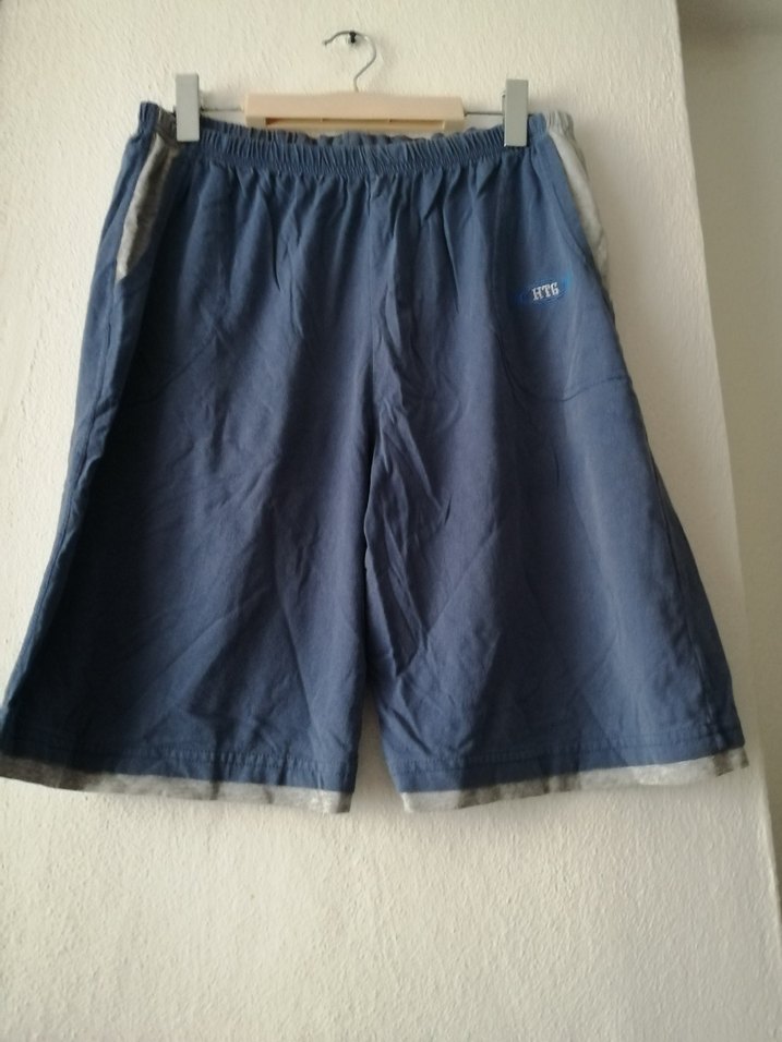 Mavi renkli, elastik bel bantlı, rahat kesim erkek mini şort. Spor ve sokak stili için yumuşak pamuklu kumaştan üretilmiştir Ölçüleri bel esnetmeden 38x2 cm, esneterek 50 x2 cm.Boyu 54cm, paça genişliği 30x2cm. İki yan cepli.