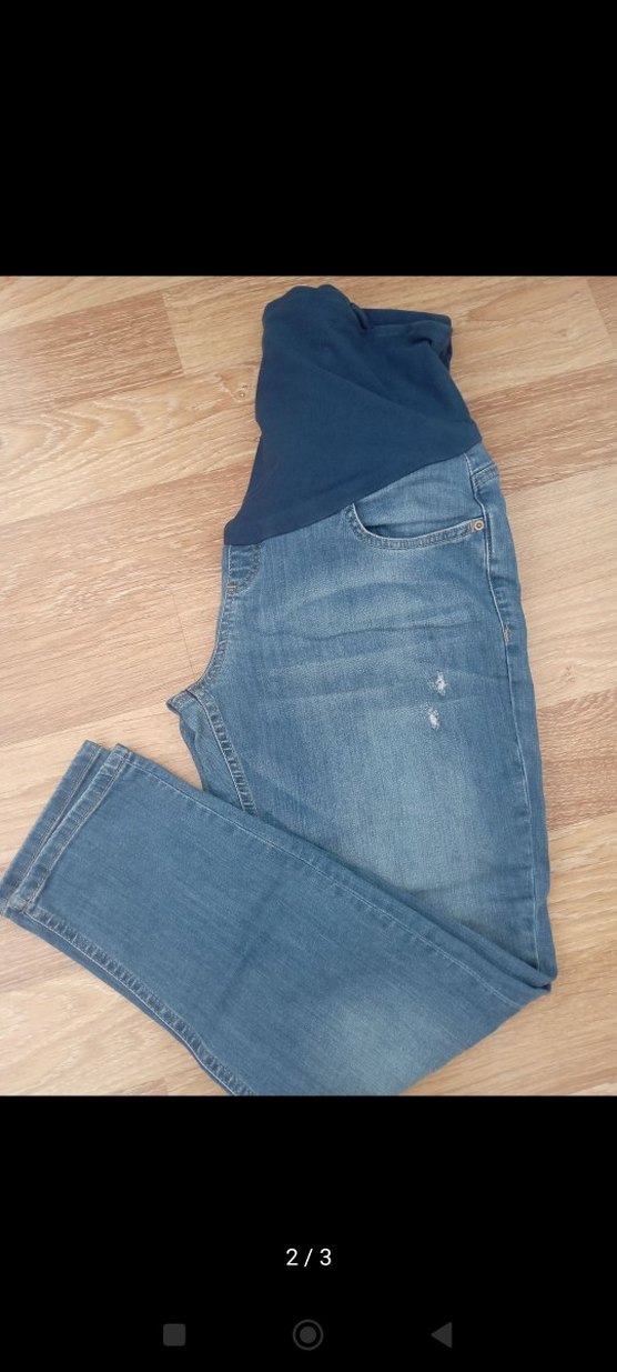 Günlük kullanıma uygun, rahat kesim mavi hamile kot pantolon, esnek bel bandıyla konfor sağlar.