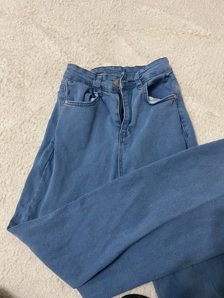 Mavi denim kumaştan, rahat kesim ve normal boyda olan bu kadın pantolonu, gündelik kullanıma uygun, zahmetsiz şıklık sunar.