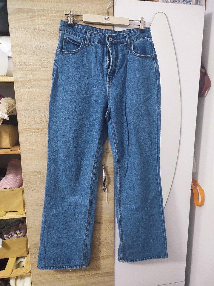 Mavi renkli, normal boy ve bol kesim kadın denim pantolon, günlük kullanıma uygun, zahmetsiz şıklık sunar. Parlak mavi tonu rahat kombinlere canlılık katar.