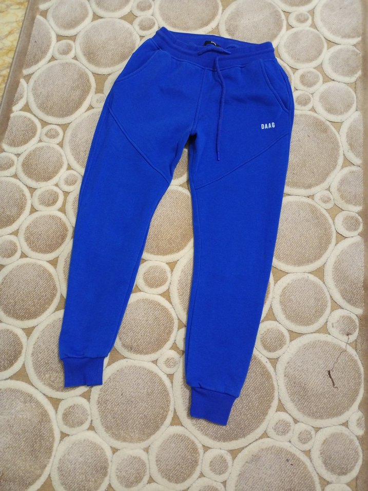 Mavi renkli, rahat kesim, yumuşak ve sıcak kumaştan yapılmış kadın eşofman altı. Günlük kullanıma uygun, sade tasarımlı ve normal boyda.