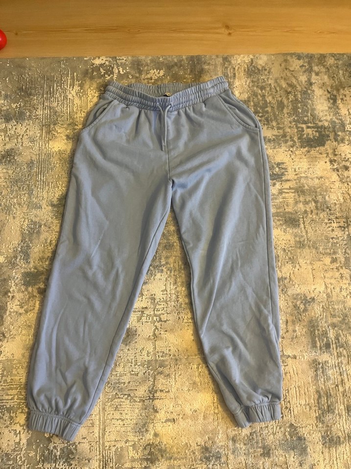Mavi, elastik bel ve paça detaylı, rahat kesim kadın eşofman altı. Günlük dış mekan kullanımı için uygundur. ✨