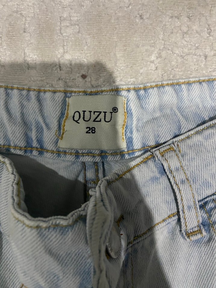 Mavi , düğmeli, rahat kesim midi uzunlukta kadın jean. Günlük sokak stili için uygun. QUZU markası, beden 28.