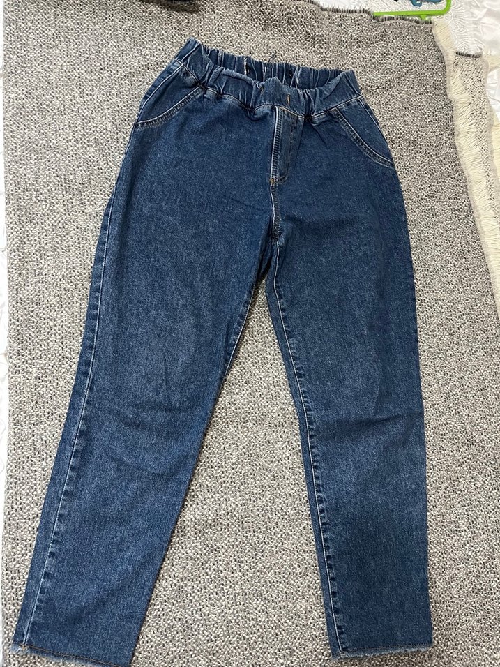 mavi tonlarda, rahat kesim ve midi boy kadın kot pantolon. Elastik bel bandı ile kolay giyilen, gündelik şıklık sunar.