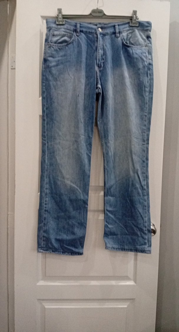 Mavi denim kumaştan yapılmış, rahat kesim ve normal boyda kadın kot pantolon. Günlük kullanım için uygun, sokak tarzında şık ve rahat bir model. bel ölçüsü 49 cm uzunluk 108 cm