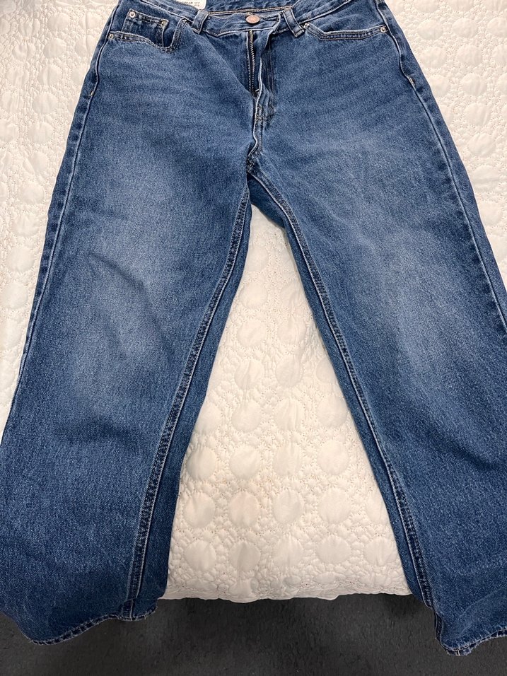 Parlak mavi renkli, rahat kesim kot pantolon. Midi boyu ve desen içermeyen yapısıyla gündelik şıklık sunar. Mom jeans artık sevmiyorum. 1 kere giydim ve yıkadım
