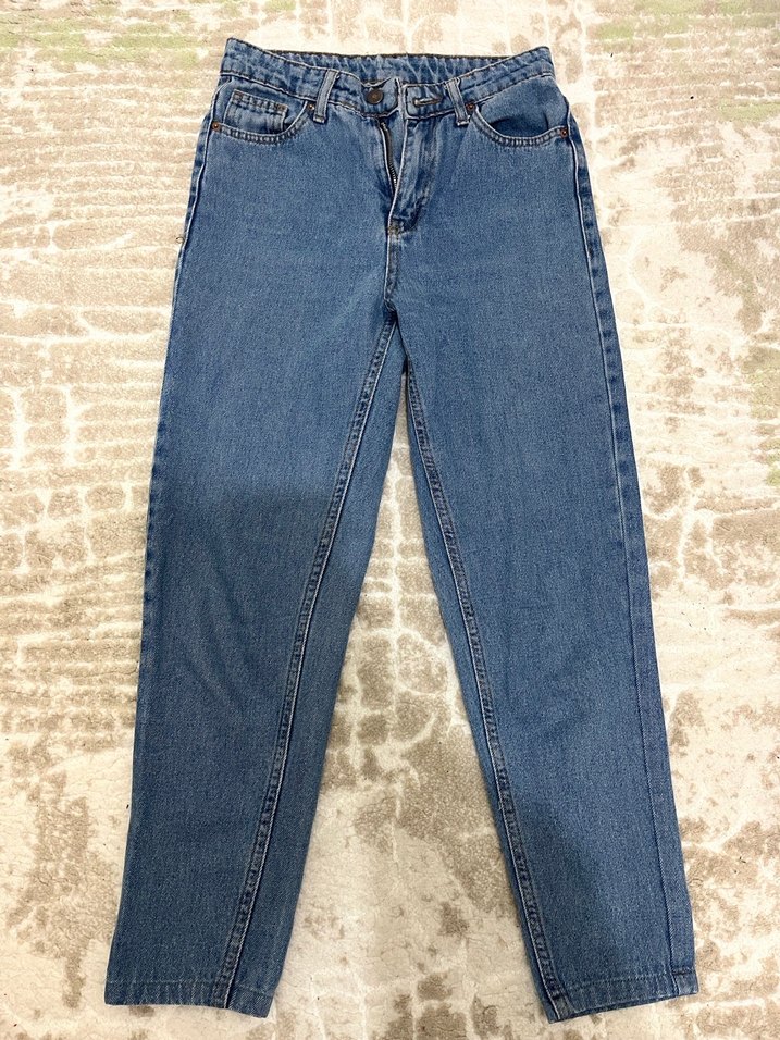Mavi denim kumaştan yapılmış, rahat kesim ve normal boyda kadın pantolonu. Desensiz, pastel tonlarda, günlük kullanıma uygun şık ve rahat bir model.