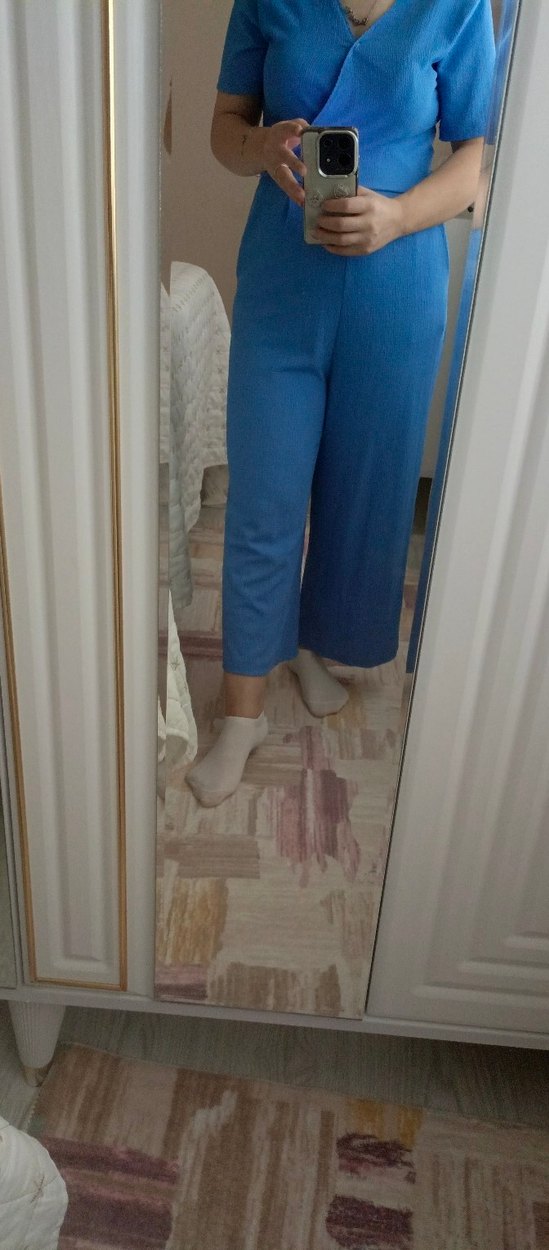 Pastel mavi renkte, rahat kesim ve midi boy kot pantolon, günlük kullanım için konforlu ve zahmetsiz şıklık sunar.