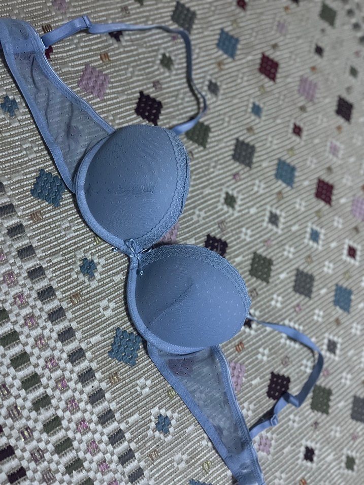 Mavi renkte, rahat ve desen içermeyen kumaştan yapılmış, ayarlanabilir askılı midi sütyen. Günlük kullanım için uygundur.