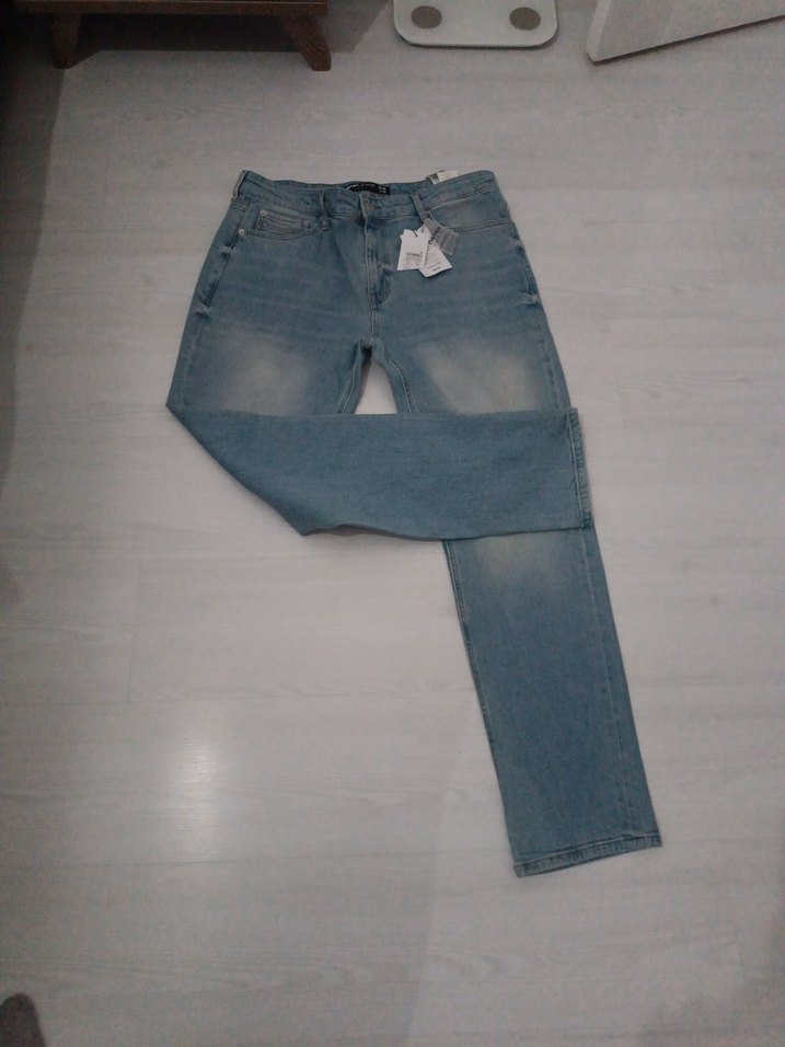 Mavi kot pantolon, regular fit ve normal boyda, rahat sokak stili için uygundur. Günlük kullanıma uygun sade ve çok yönlü bir model.