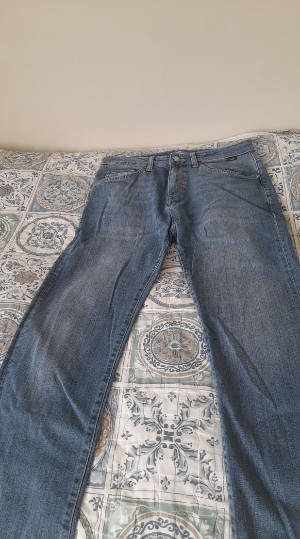 Mavi renkte, regular fit Günlük kullanım ve sokak stiline uygun, düz desenli ve normal boyda.alacak olan şanslı iki kez ancak kullanılmıştır.oğlum kıyafetlerine düşkün olduğu için titiz kullanmıştır.kilo aldığı için satıyorum bel:39 boy:99