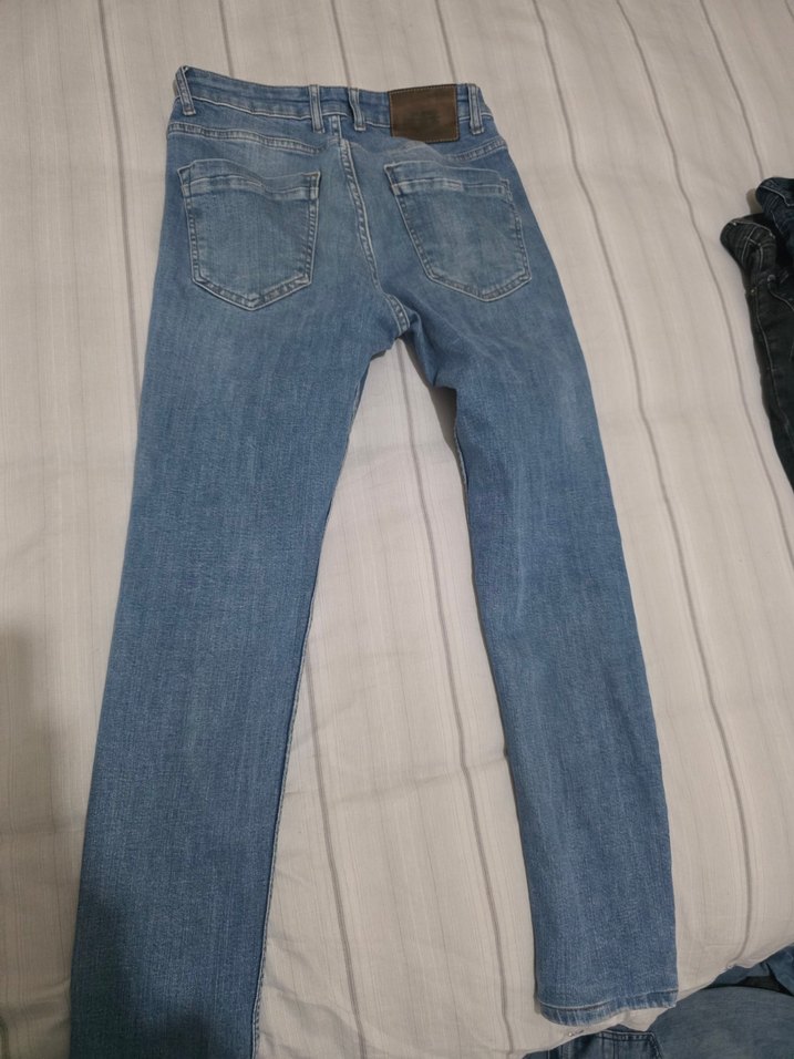 Mavi-gri renkte, regular fit ve normal boyda denim kadın pantolon. Desensiz tasarımı gündelik kullanıma uygun, zahmetsiz şıklık sunar.